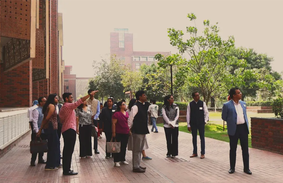 Members also took part in a guided campus walk, experiencing firsthand the university’s thoughtfully designed academic and residential spaces, vibrant student life, and collaborative learning environment. The walk provided a tangible sense of Ashoka’s ethos and its commitment to fostering a holistic educational experience.